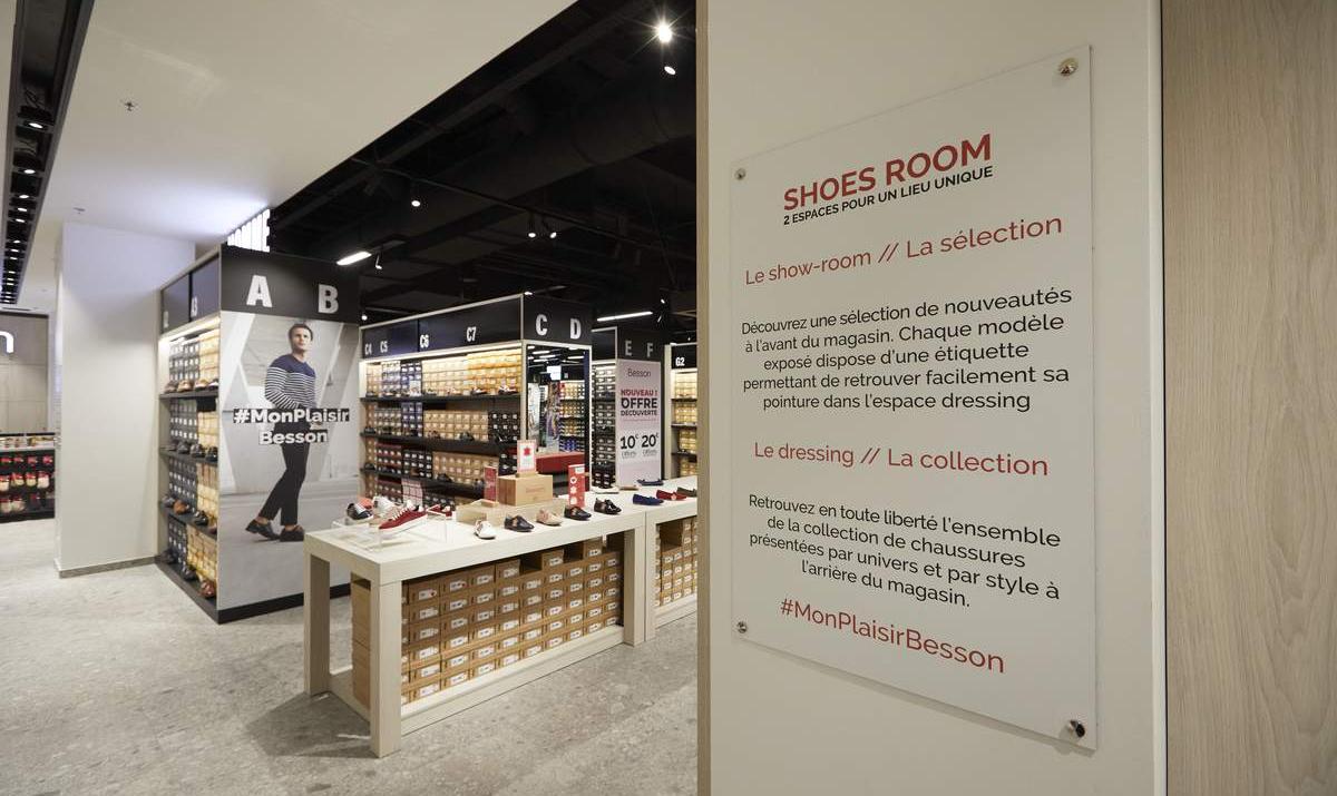 SUPERBRAND a imaginé le concept de « SHOES ROOM » qui s’exprime à travers un modèle de vente unique organisé en 2 espaces distincts, qui permet la mise en avant pointue d’une sélection de nouveautés dans le show-room à l’avant et la présentation ordonnée de l’ensemble des pointures, des modèles et des gammes au sein du dressing, à l’arrière du magasin.