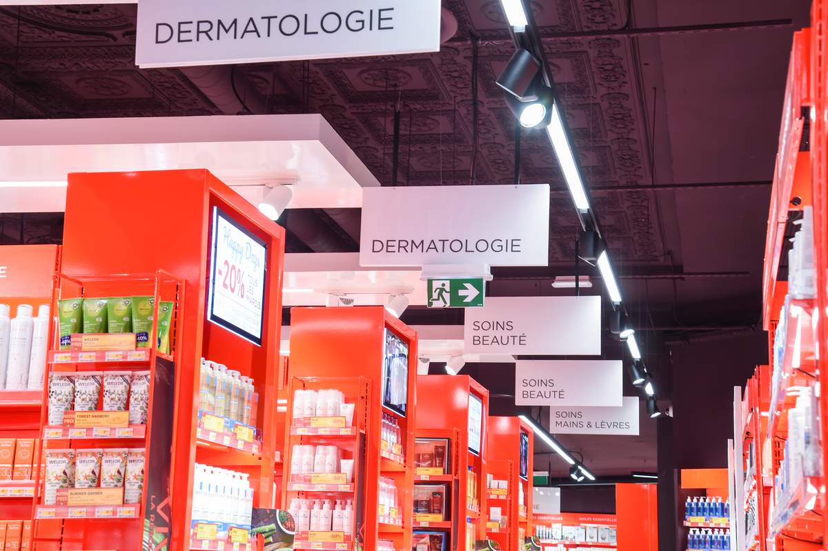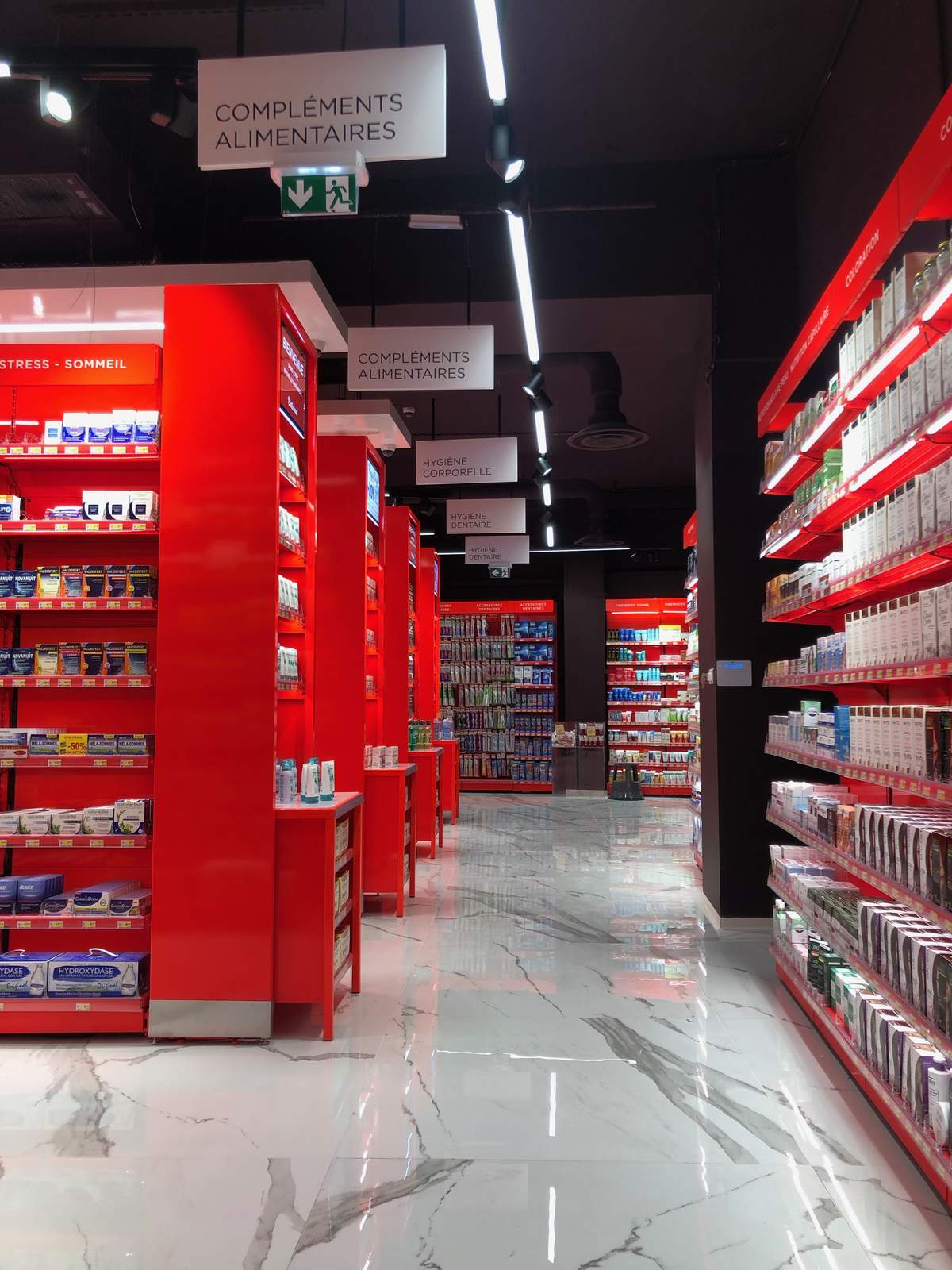 Ce concept d’aménagement valorise une approche unique pour de très grandes surfaces, de 300 à 800 m2, permettant de prendre en charge 1500 à 2000 clients/jour, et un mix basé sur le conseil officinal et le selfcare, le très grand choix, le prix et l’accompagnement personnalisé.