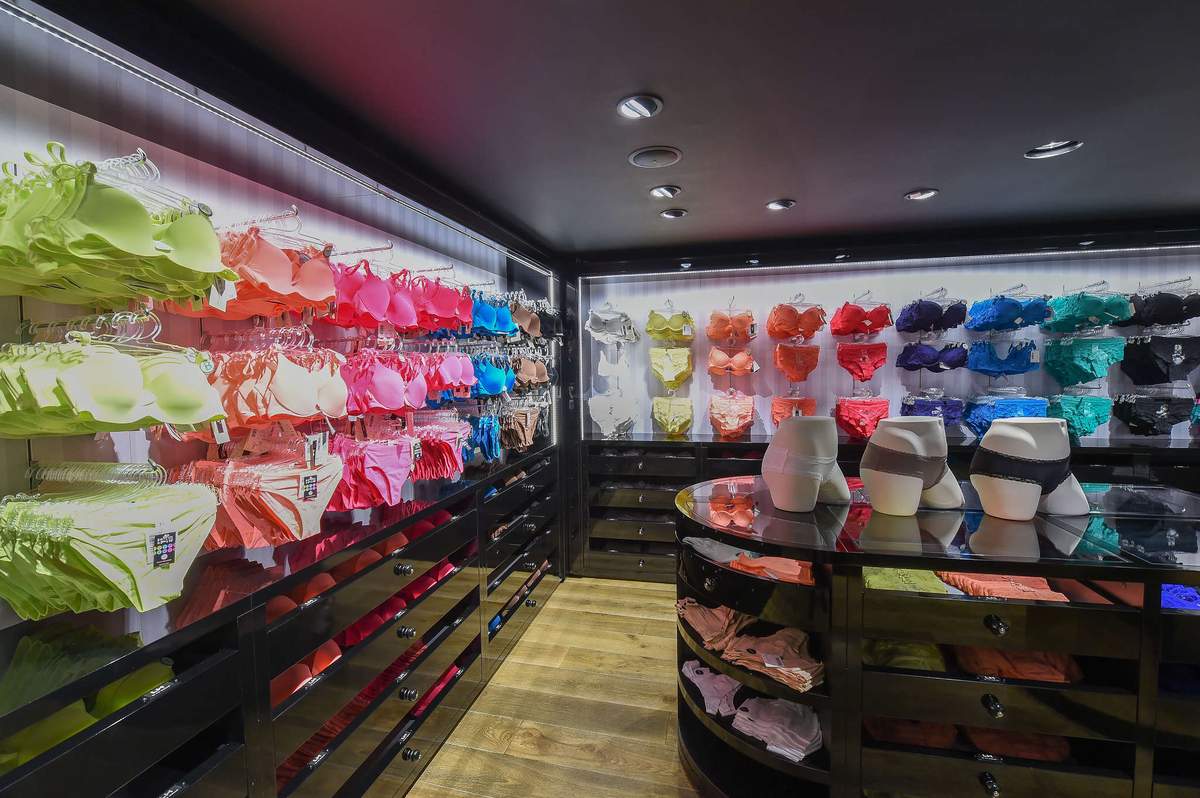 Le sous-sol, enfin, accueille les collections Enfant et la Lingerie, imaginée comme un boudoir très féminin.